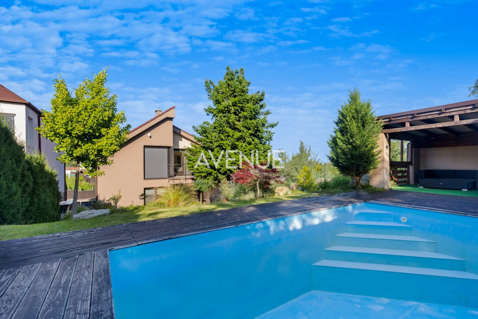 slnečná záhrada a vlastný bazén, kde si môžete užívať osvieženie v horúcich letných dňoch