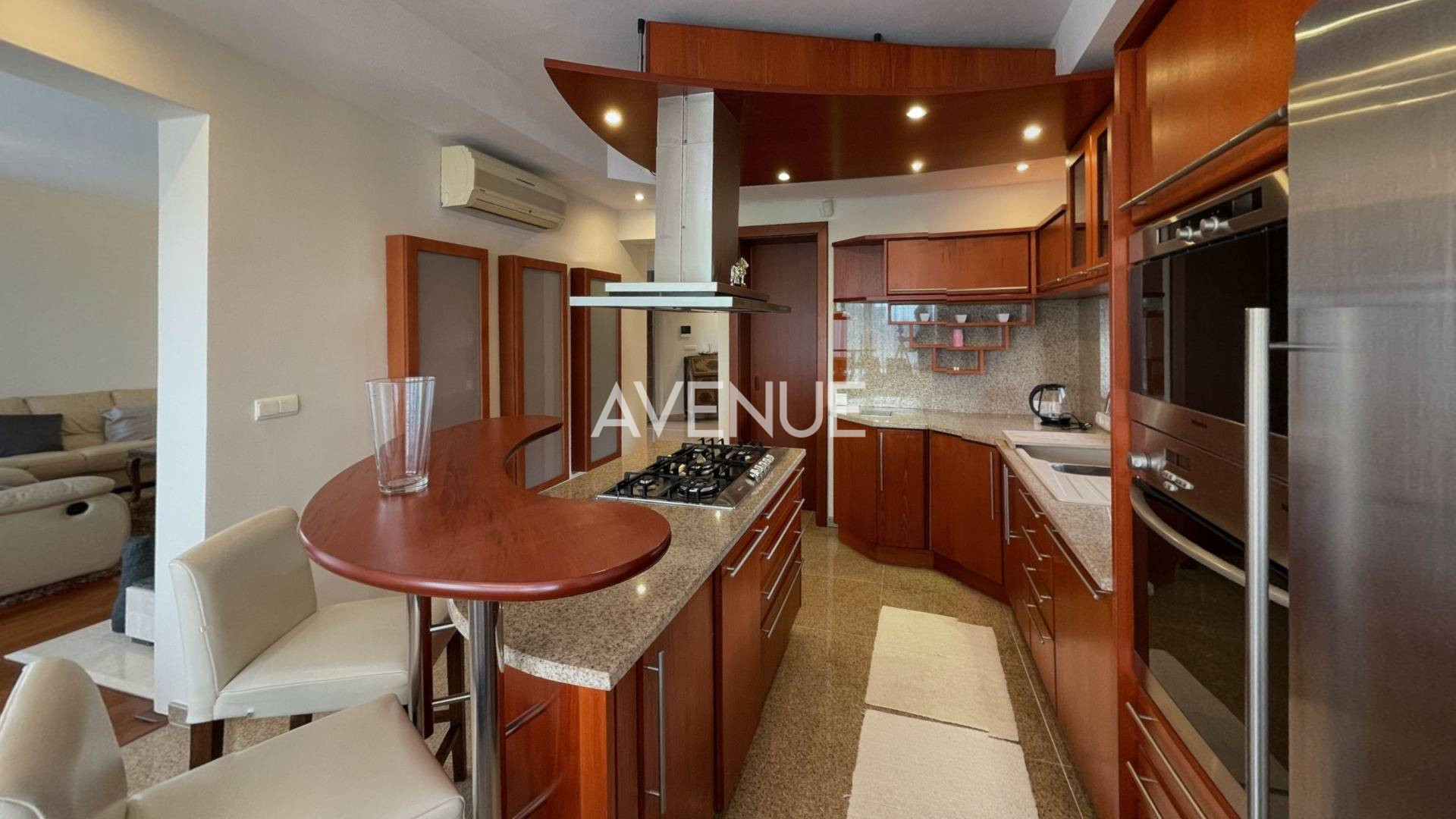 - je zariadený na mieru dodaným nábytkom z kvalitného exotického masívneho dreva