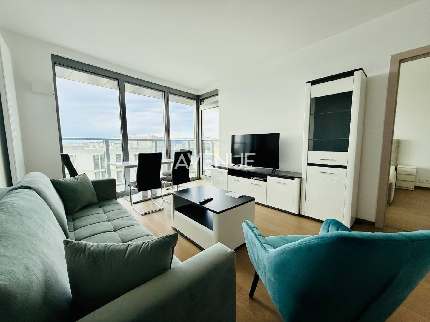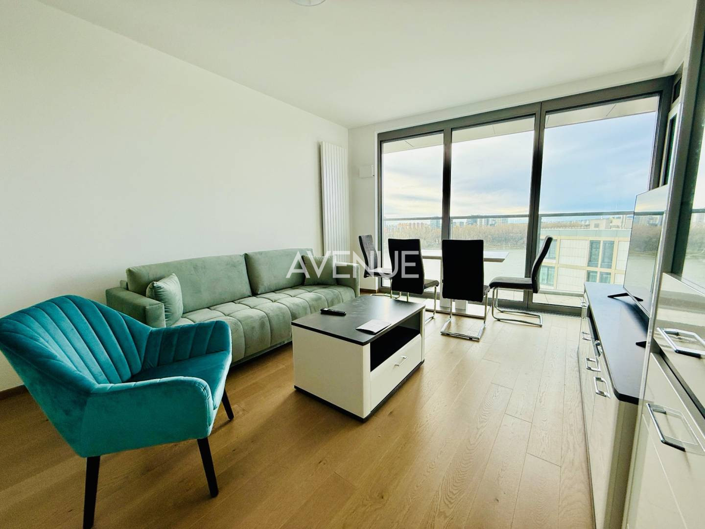 Slnečný apartmán s krásnym výhľadom a loggiou, v kvalitnom štandarde s celkovou výmerou 50m2 plus loggia o výmere komfortných 9 m2 sa nachádza v novom centre mesta, EUROVEA - TOWER, v prvom mrakodrape na Slovensku. Za veľkoformátovými oknami s trojskom a exteriérovým tienením, čo tvorí absolútnu harmóniu.