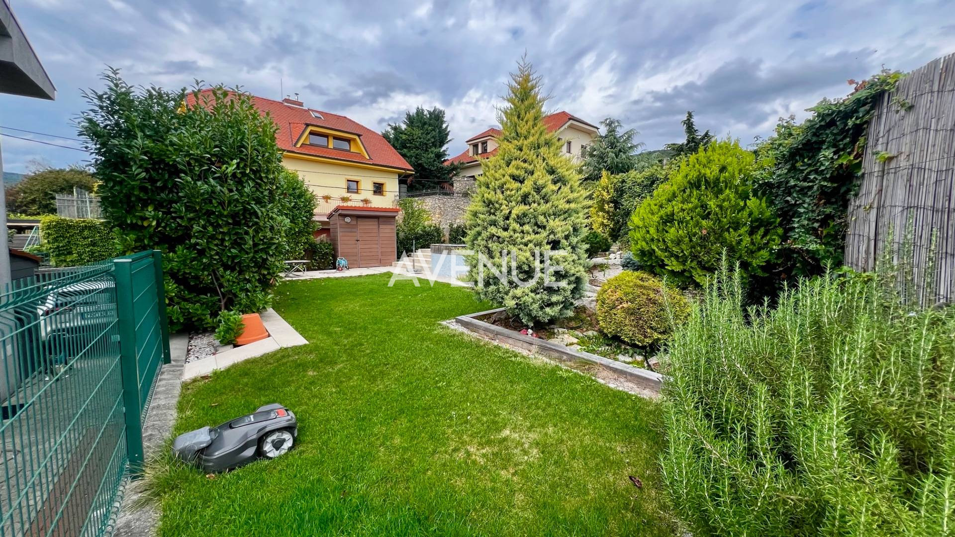exteriér: pozemok je oplotený (múr z tehly a kameňa), pod domom sú 3 parkovacie miesta za automatickou kovovou bránou, parkovo upravená záhrada s robotickou kosačkou, oddelená oporným múrikom a schodíkmi, zabudovaný veľký okrúhly bazén s technológiou (úprava terénu z roku 2020).