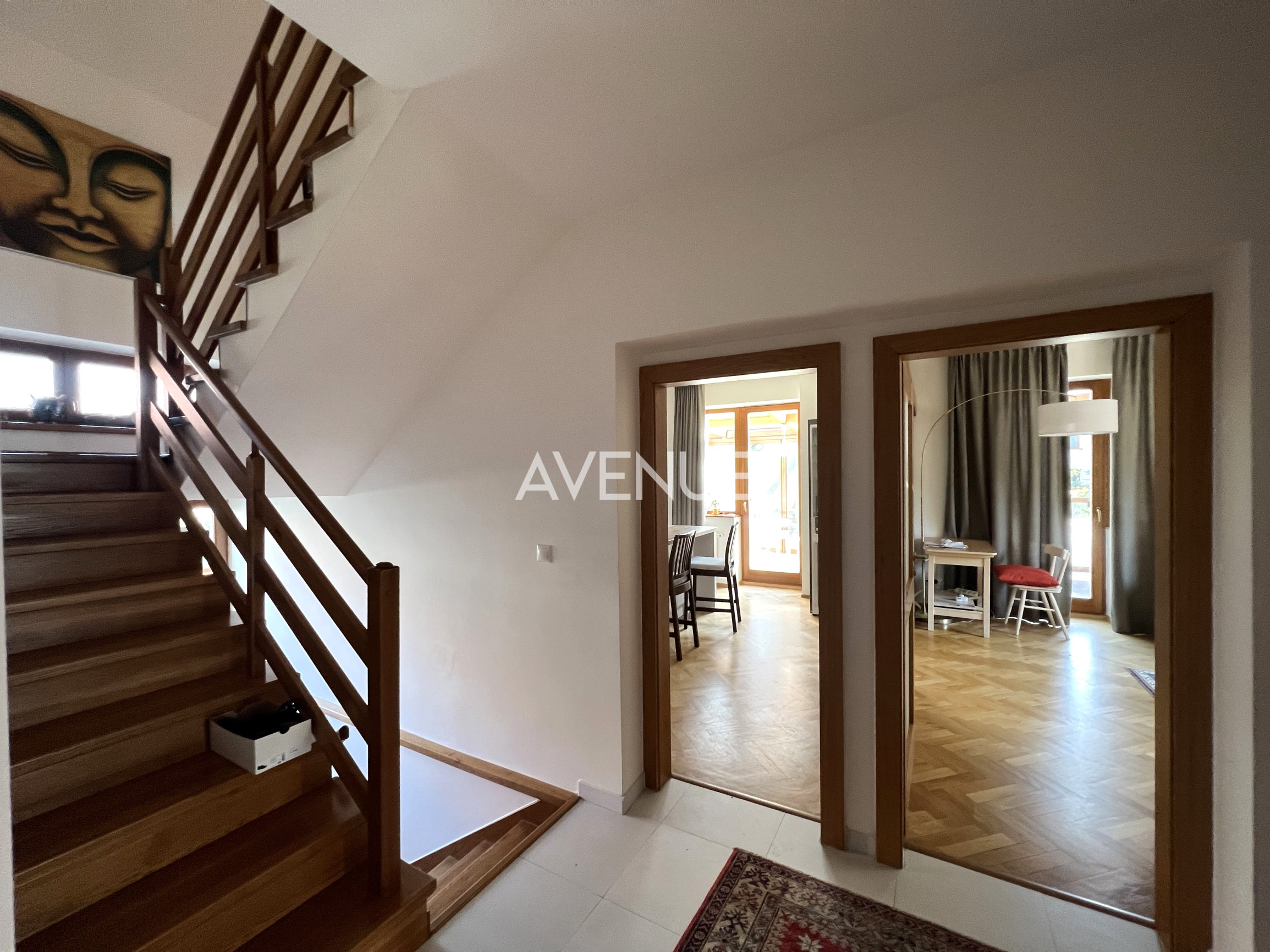 1.NP pozostáva z: vstupná chodba so vstavanou skriňou, kuchyňa s výstupom do zimnej záhrady na terase, samostatná obývačka, samostatná jedáleň, kúpeľňa s vaňou a sprchovacím kútom, samostatná toaleta, hosťovská izba.