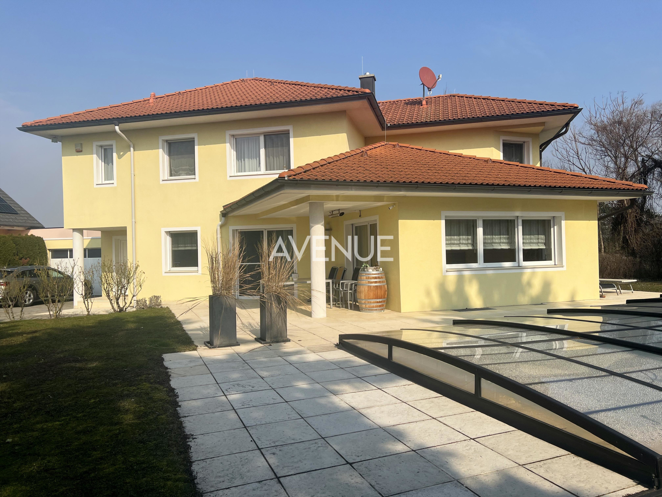 AVENUE RE ponúka na predaj výnimočnú rezidenciu v stredomorskom štýle na pozemku s výmerou 1 351 m2. Elegantná vila v pokojnej lokalite Pottendorf ponúka tri podlažia komfortného bývania, privátne wellness, bazén a výbornú dostupnosť do Viedne aj Bratislavy.