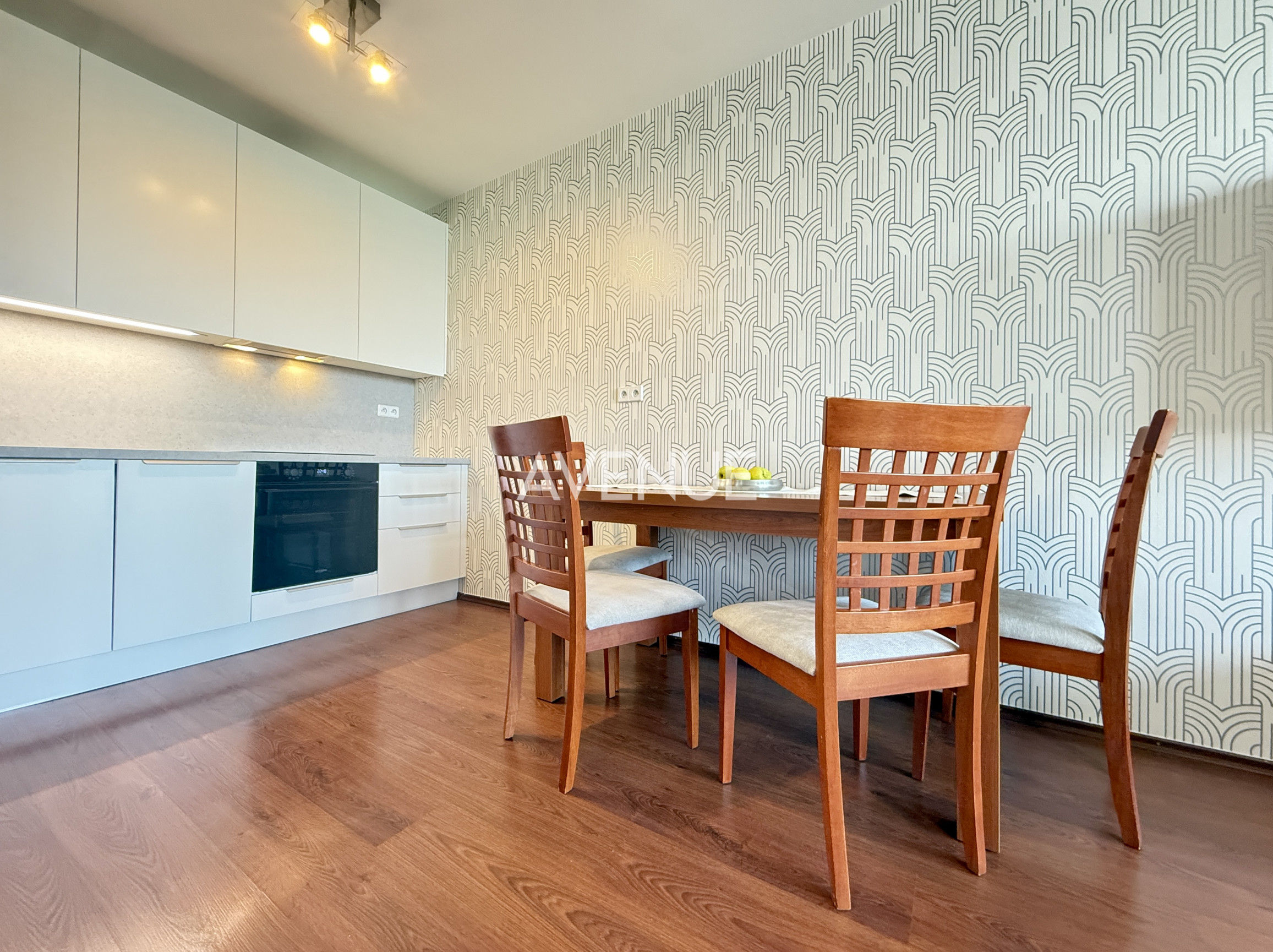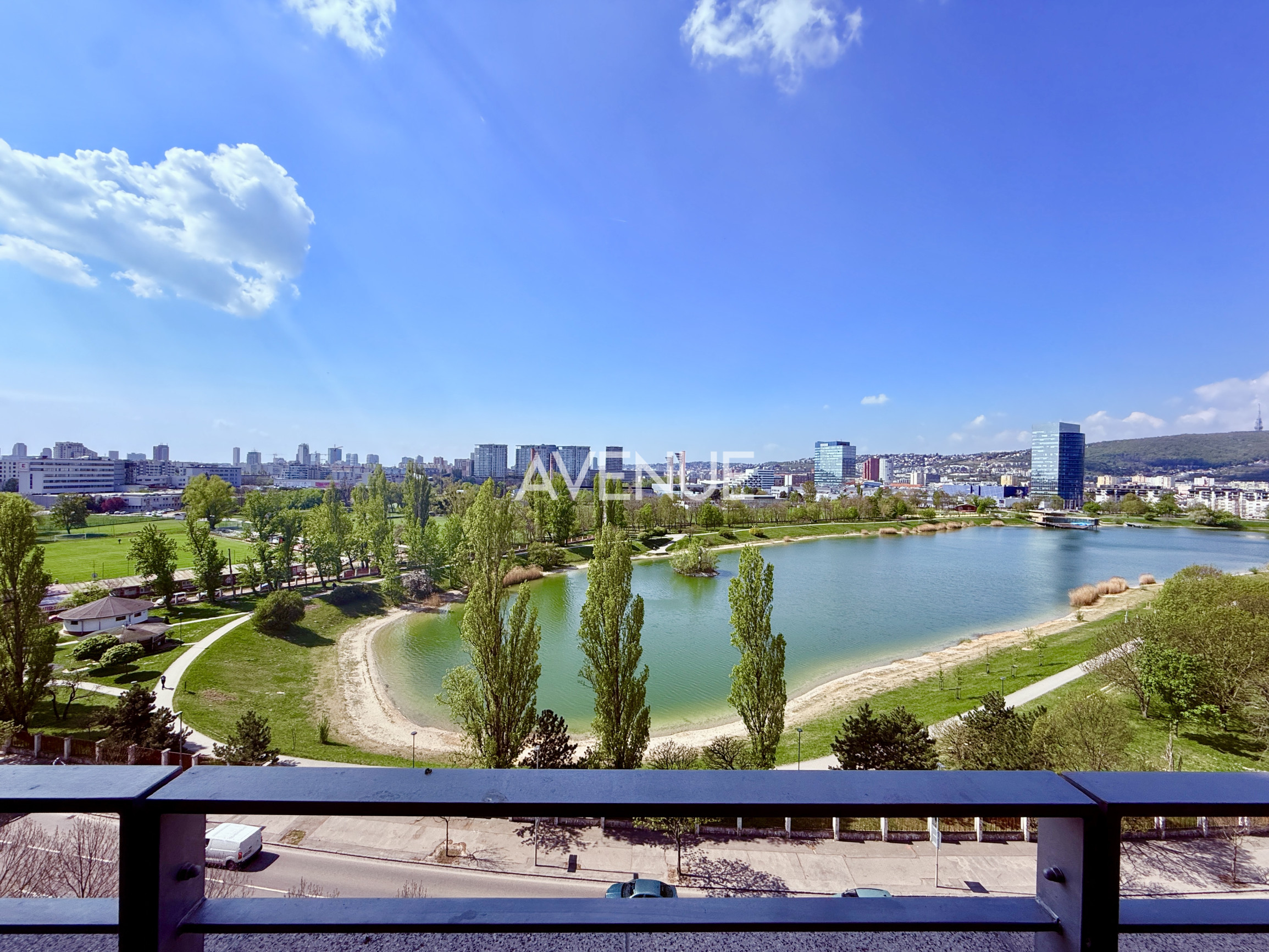 Slnečný byt s veľkoplošnými plastovými oknami, disponuje otvorenou obývacou izbou s pohodlnou sedačkou a kuchynským kútom. Úplne nová kuchynská linka je vybavená chladničkou, varnou doskou s rúrou a umývačkou riadu. Vzdušná obývacia izba je orientovaná do ulice s neopakovateľným výhľadom na jazero Kuchajda a mesto Bratislava. Praktická kúpeľňa s vaňou, práčkou a toaletou.